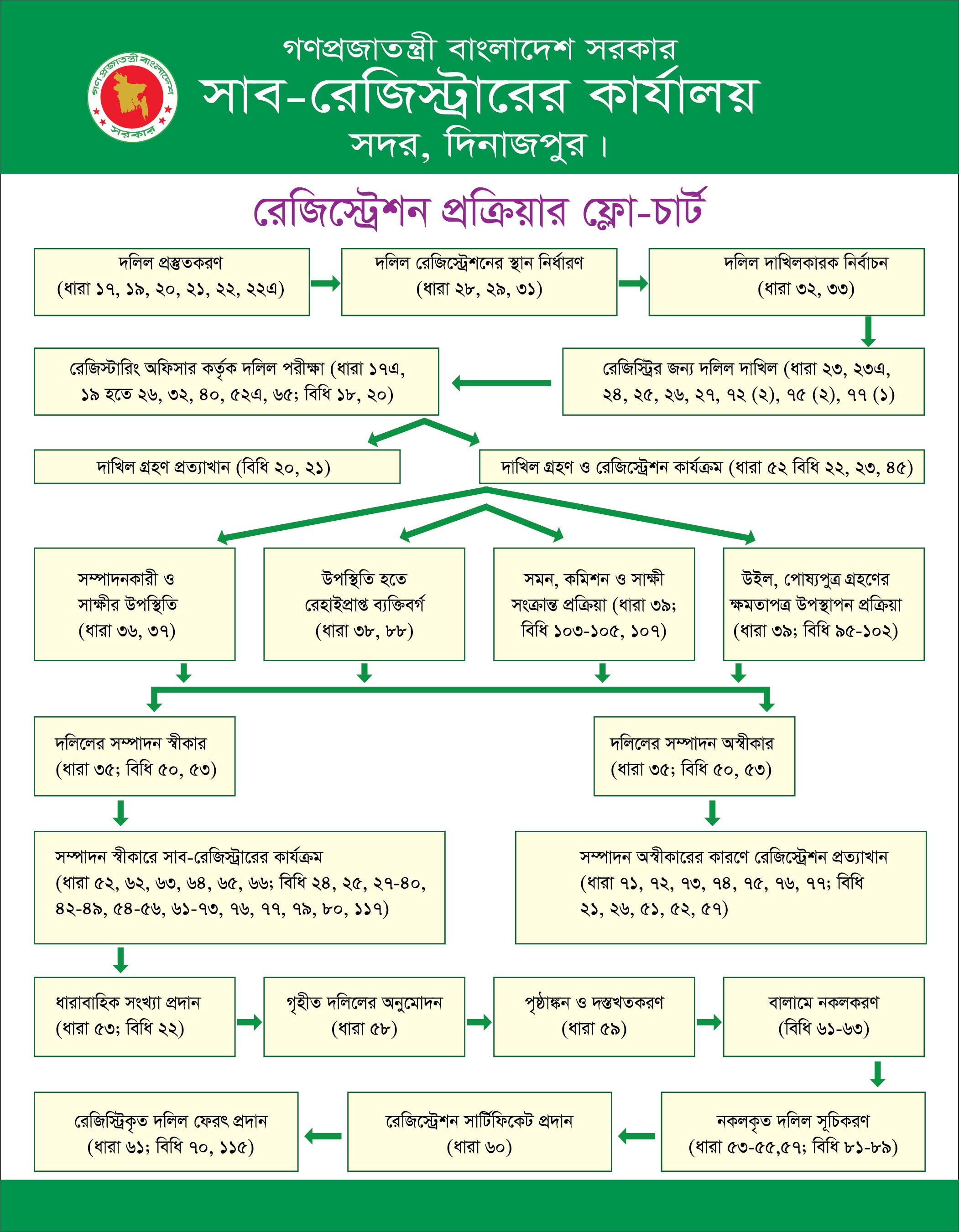 | ১ | দলিলের নকল সংগ্রহ। | ১ দিন হইতে ৭ দিন | সাব-রেজিস্ট্রার | জেলা রেজিস্ট্রার |